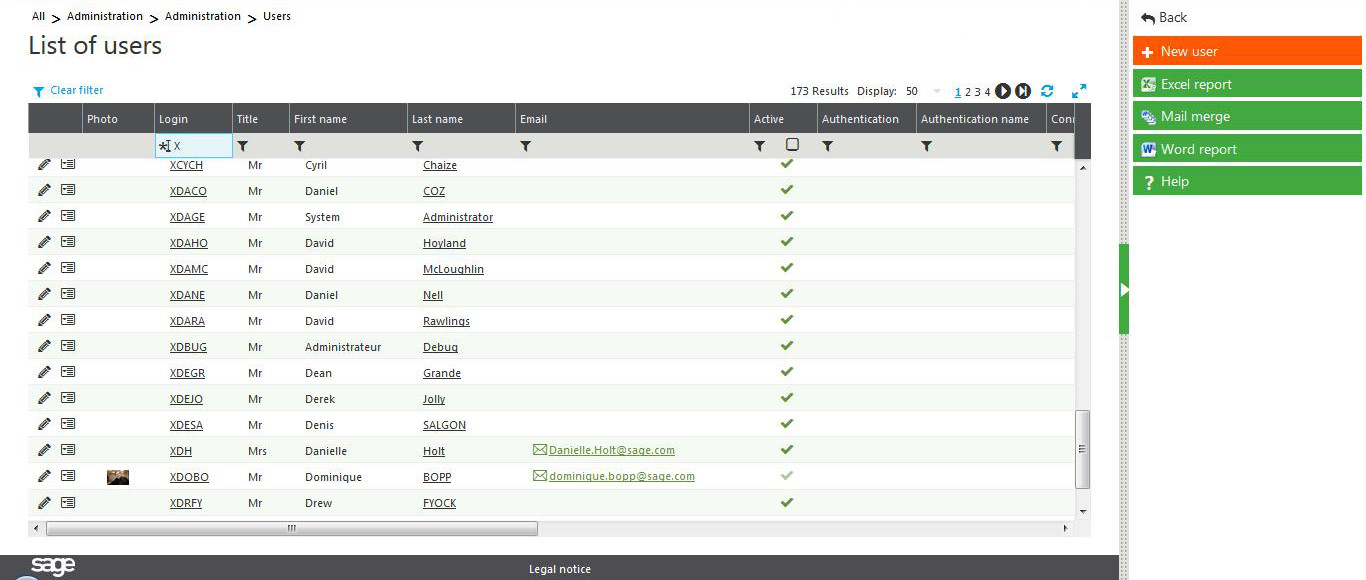 The total number of records might be displayed if this does not have an impact on performances. The number of lines per page can be changed, and the Previous / Next / First / Last links allow you to go to another page. | |