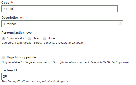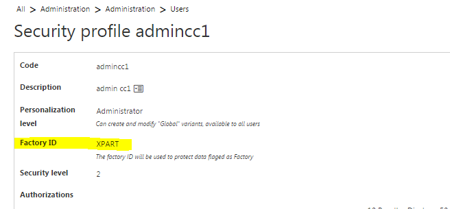 As a partner, you can define your Factory ID in a security profile if your nodelocal.js file authorizes this option.