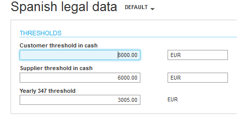 - Customer threshold in cash and Supplier threshold in cash: Enter the minimum amount of cash payment that you must declare for one year.
