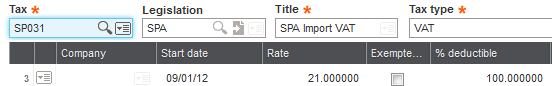 - In the Tax rates function (GESTVT), in the Tax type field, select Additional Tax.