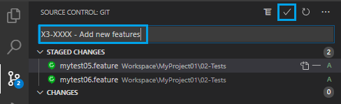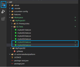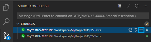 When new automated tests are created and git management is activated, the new files are marked as "untracked."
