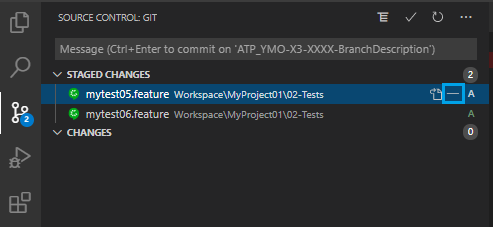 Click the Minus sign to unstage a test or click … and select Unstage All Changes to cancel all the modifications.