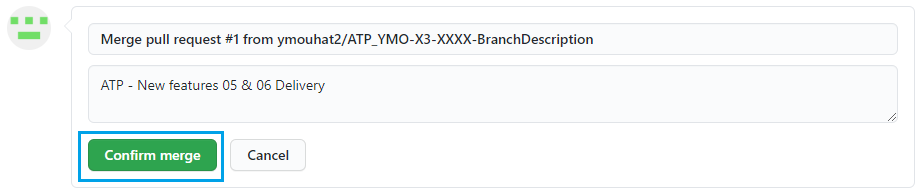 If the pull request is approved, the reviewer can merge your feature branch into the master branch by clicking Merge pull request.