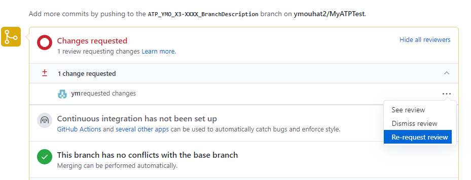 Sometimes your initial pull request is not approved and the reviewer asks for modifications. In this case you don’t need to reopen a pull request. You can re-request your pull request.