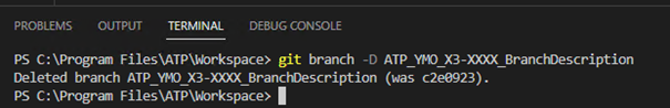 In the VS Code terminal enter the git branch -D <Branch_Name> command and press Enter.