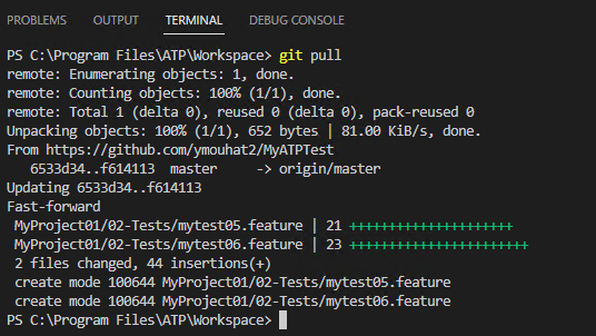 For example, the screenshot below shows the new automated tests Mytest05 and Mytest06 have been merged in master branch and added on your local master branch.