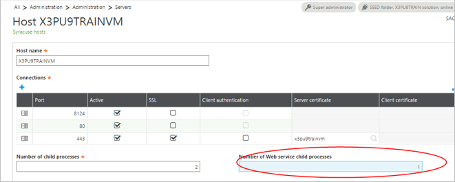On the next screen, in the Number of Web service child processes field, enter 1.