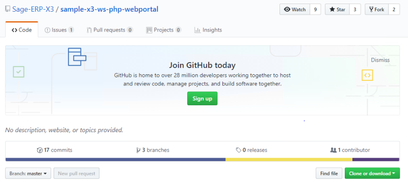 From https://github.com/Sage-ERP-X3/sample-x3-ws-php-webportal, click Clone or Download.