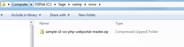 Save the sample-x3-ws-php-webportal-master.zip file to C:\Sage\wamp\www.