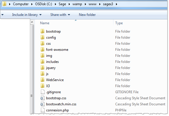 Extract all files to C:\Sage\wamp\www\sagex3.