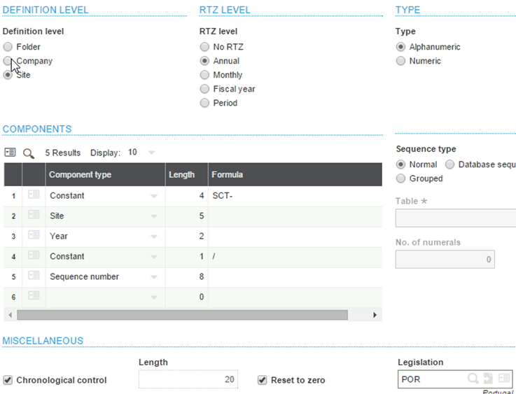 The sequential numbers submitted for electronic signature and exported to SAF-T need to have a specific structure because it is required to easily distinguish the serial number of the sequential number (alphanumeric structure) from the sequential number itself (numeric structure). These 2 parts must be divided by a slash (/).