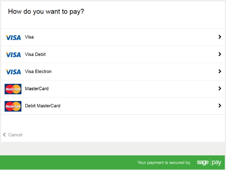 Select the card type from the list below.