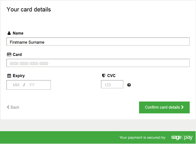 Enter the card details and click Confirm card details when complete.