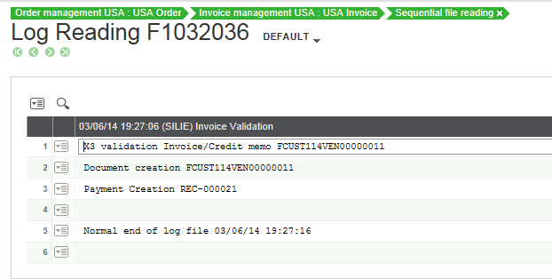A log file displays the journal created for the posting as well as the automated payment.