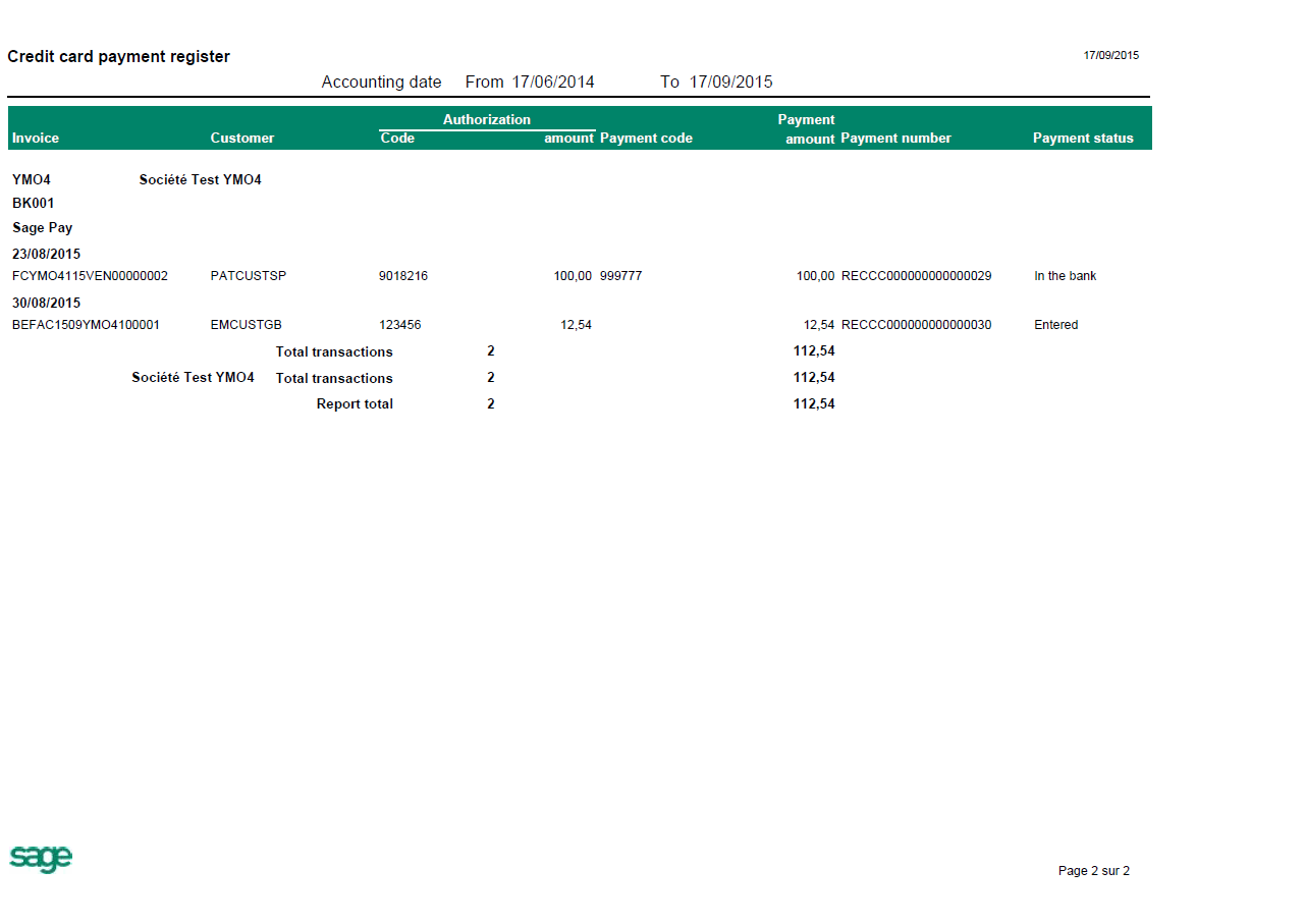 Credit card payment register report