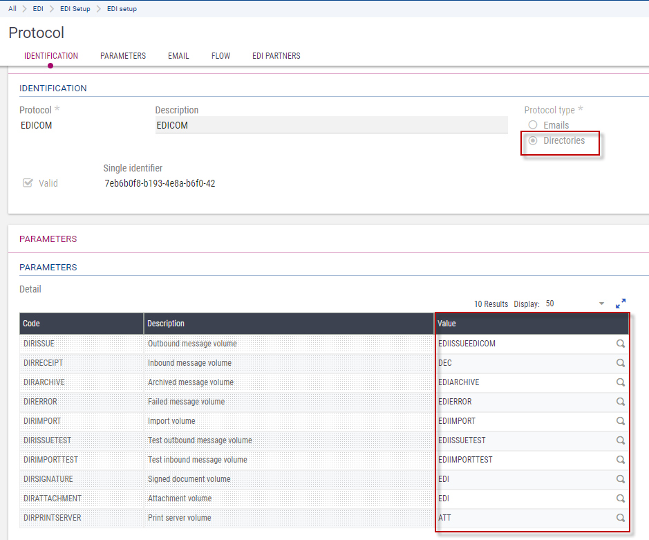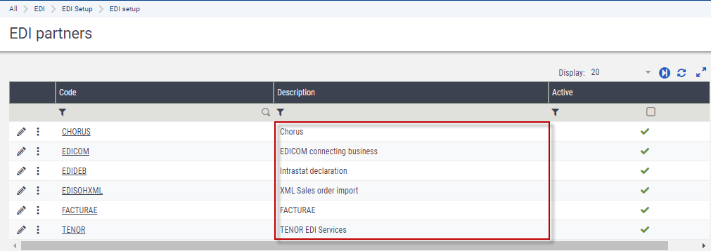 In the EDI partners section, you can view the list of partners using this protocol.