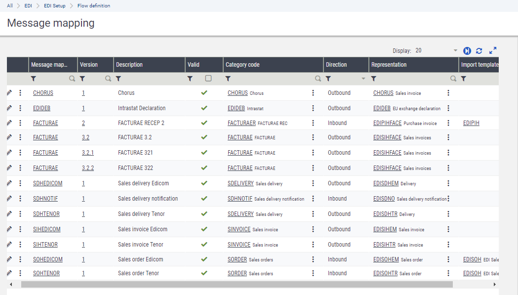 Message mapping consists in associating the information of a message linked to a category with the information of a Sage X3 representation.