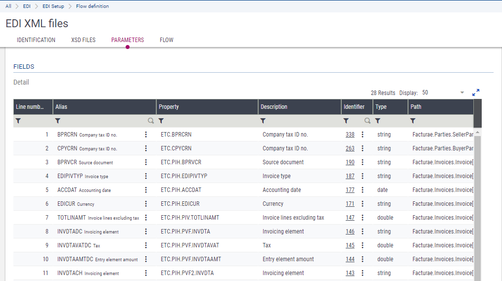 In this screen, use the XSD structure to predefine the EDI format used for the XML files to be sent and received.