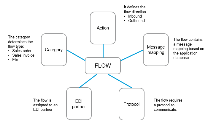 Defining a flow means wrapping or creating a package of EDI messages. This approach aims at grouping the various parameters required to implement an exchange by specifying: