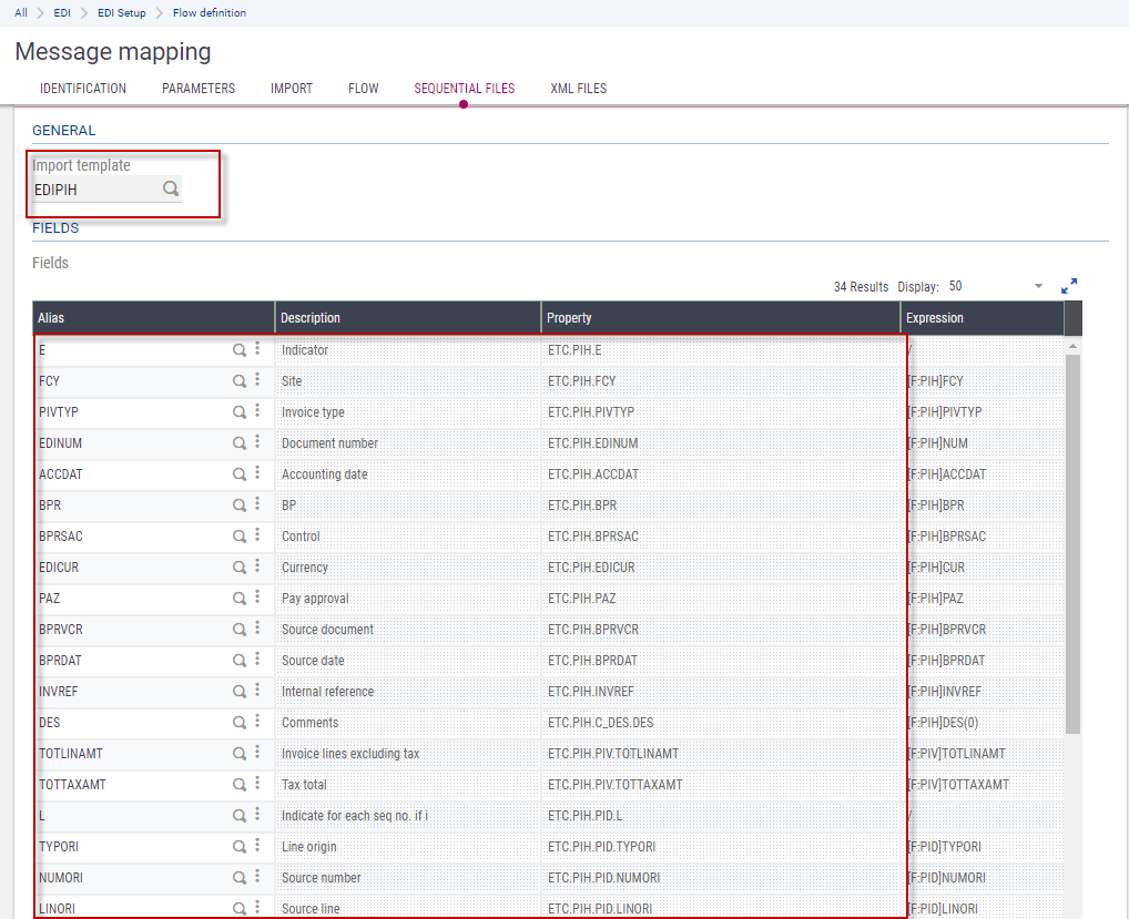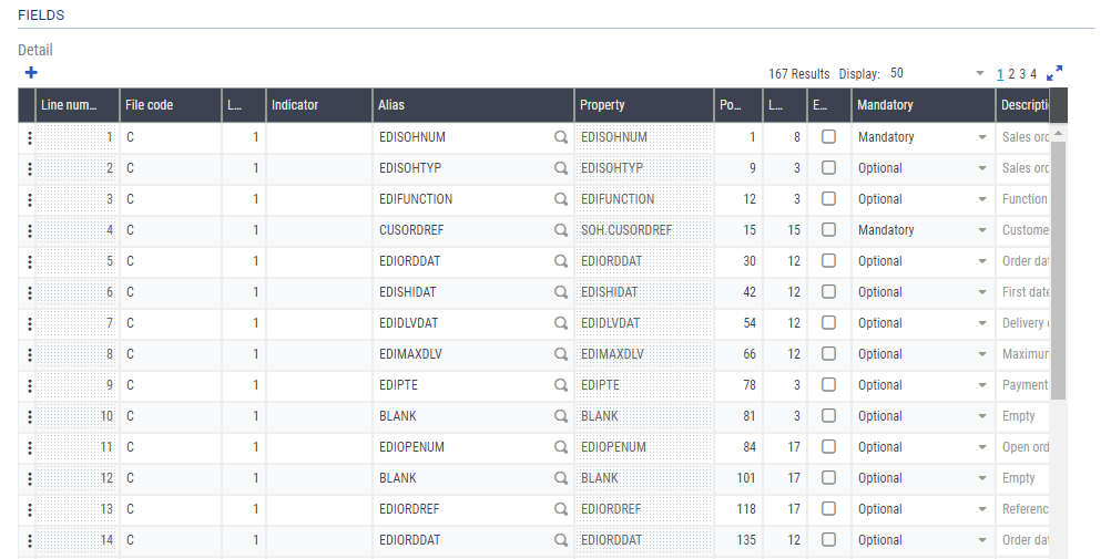 Depending on the EDI category type, a field defined as not being mandatory in the standard use of Sage X3 can be defined as mandatory here.