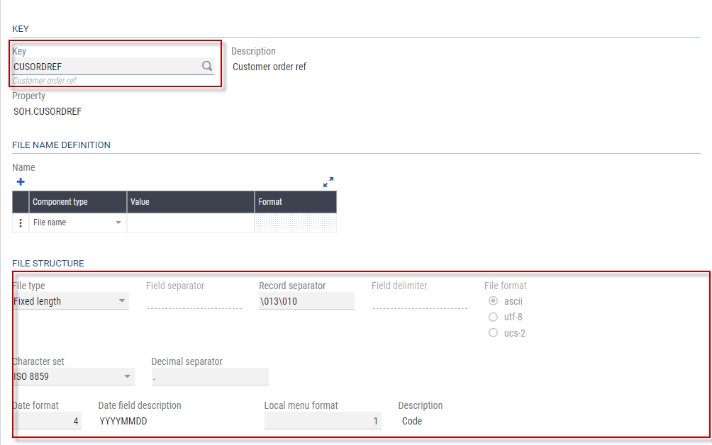 • For inbound messages, you must also enter a key identifying the property used as the unique reference to distinguish one document from the other. For example, this can be the customer order number for a sales order document.