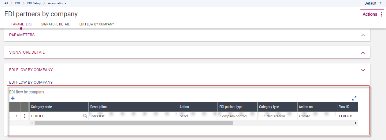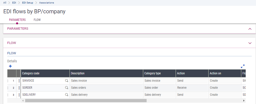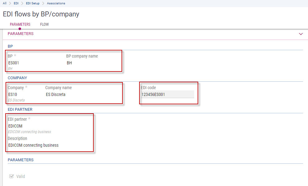 Since no third parties are defined for this declaration, you must define the flows between the company and the EDI partner at function level.