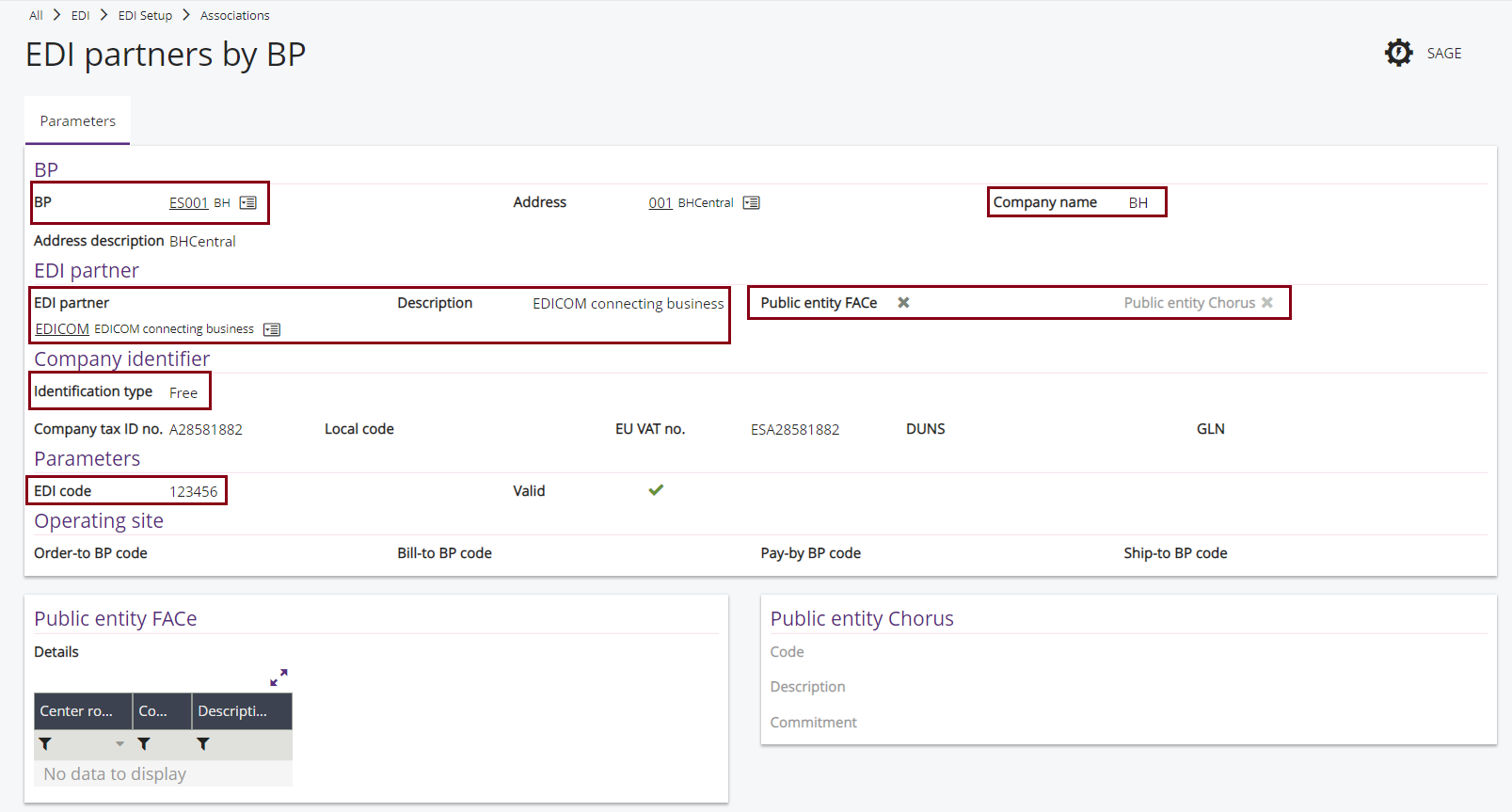 Associate the parties involved in the exchange: which EDI partner with which site (or company) and at which BP address declared in Sage X3.