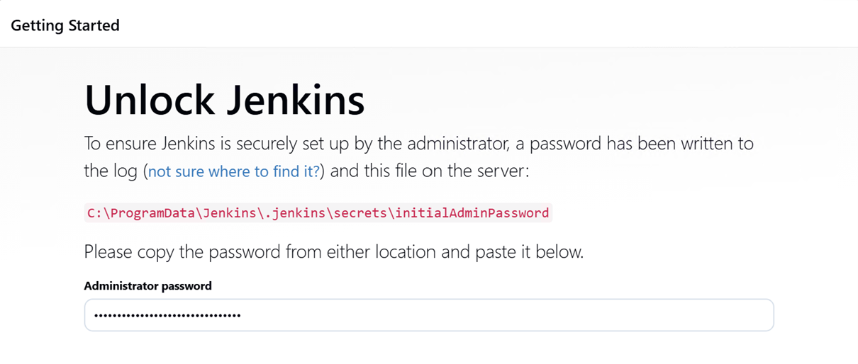 - Follow the displayed instructions, inserting the Jenkins Administrator password where requested.