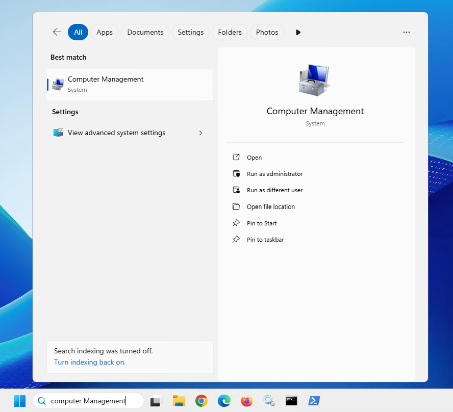 - Locate the Computer Management app.