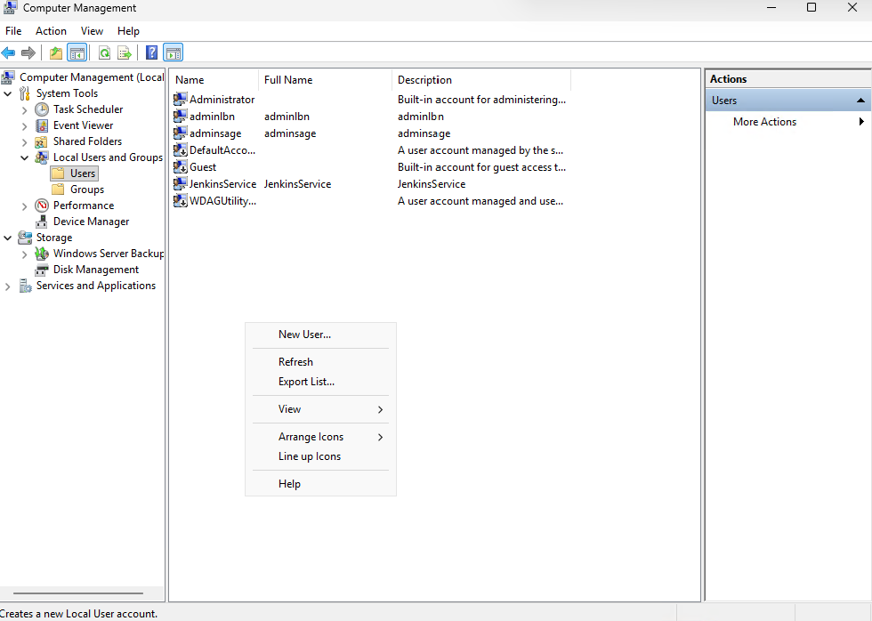 - Right-click and select New User.
