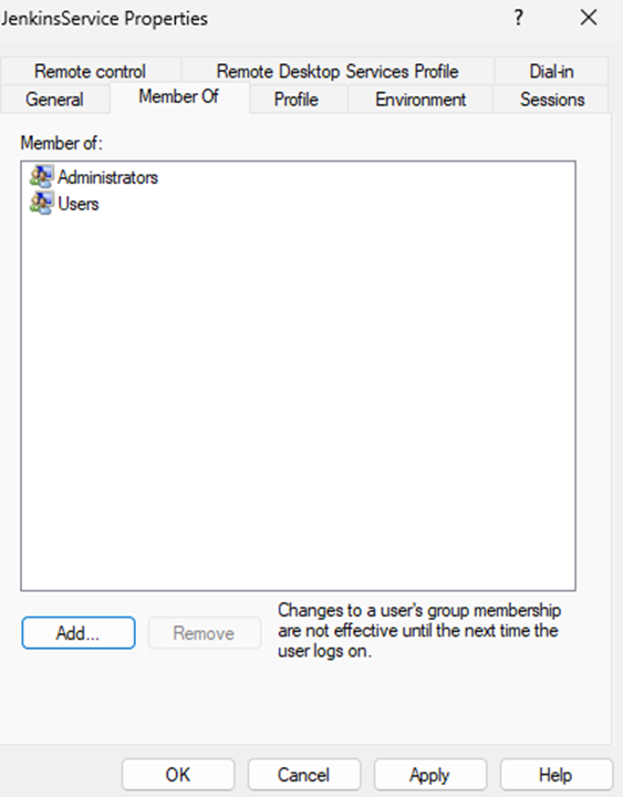 To assign the Jenkins (administrator) user to the Administrator group: