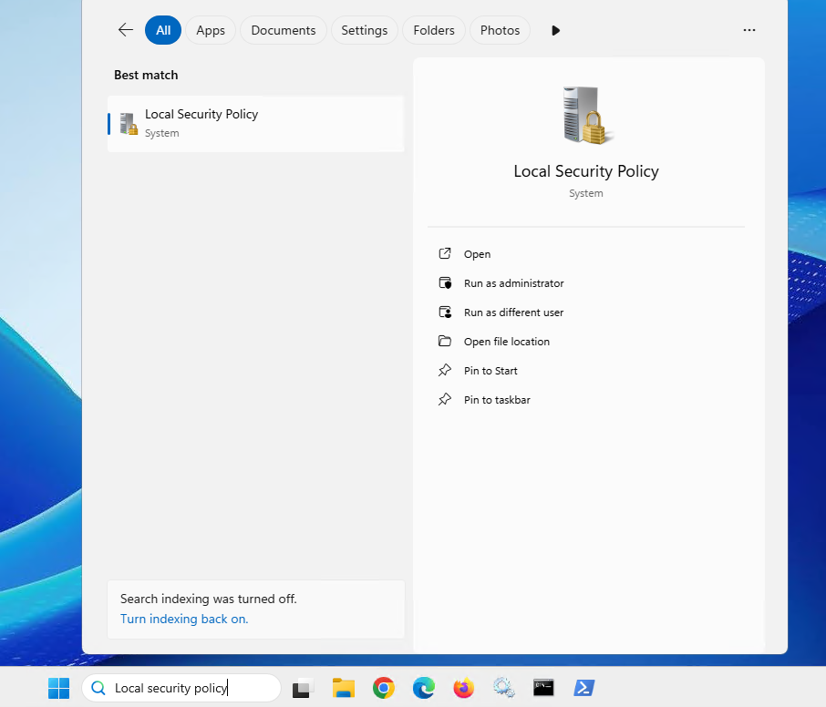 - Open the Local Security Policy app.