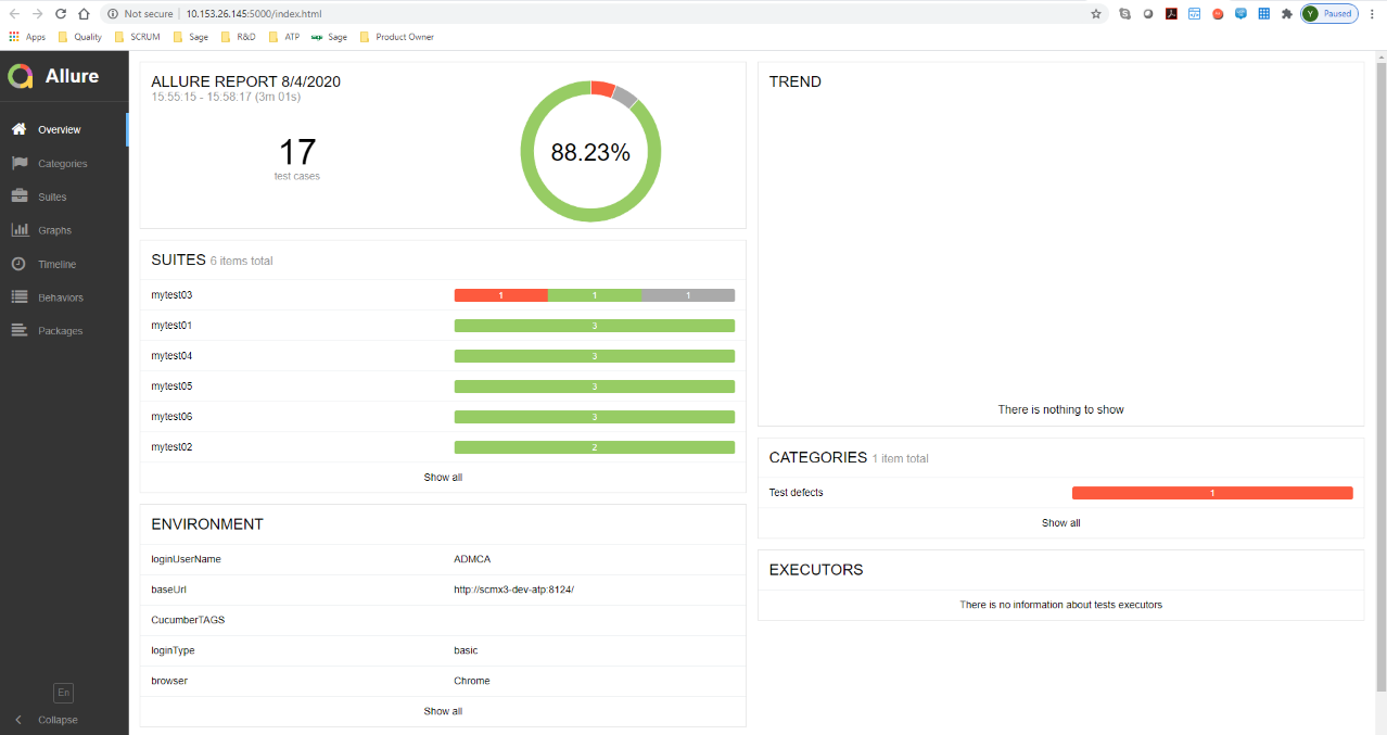 The first page of the Allure report shows the automated test summary.