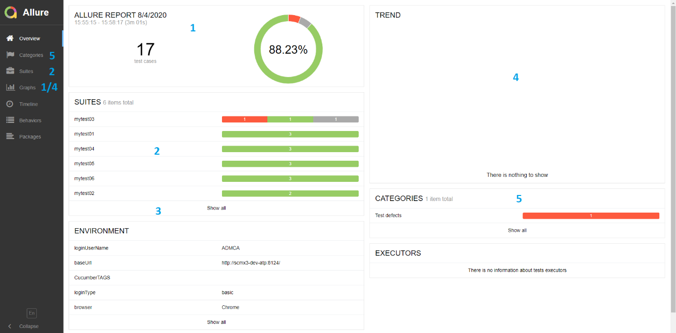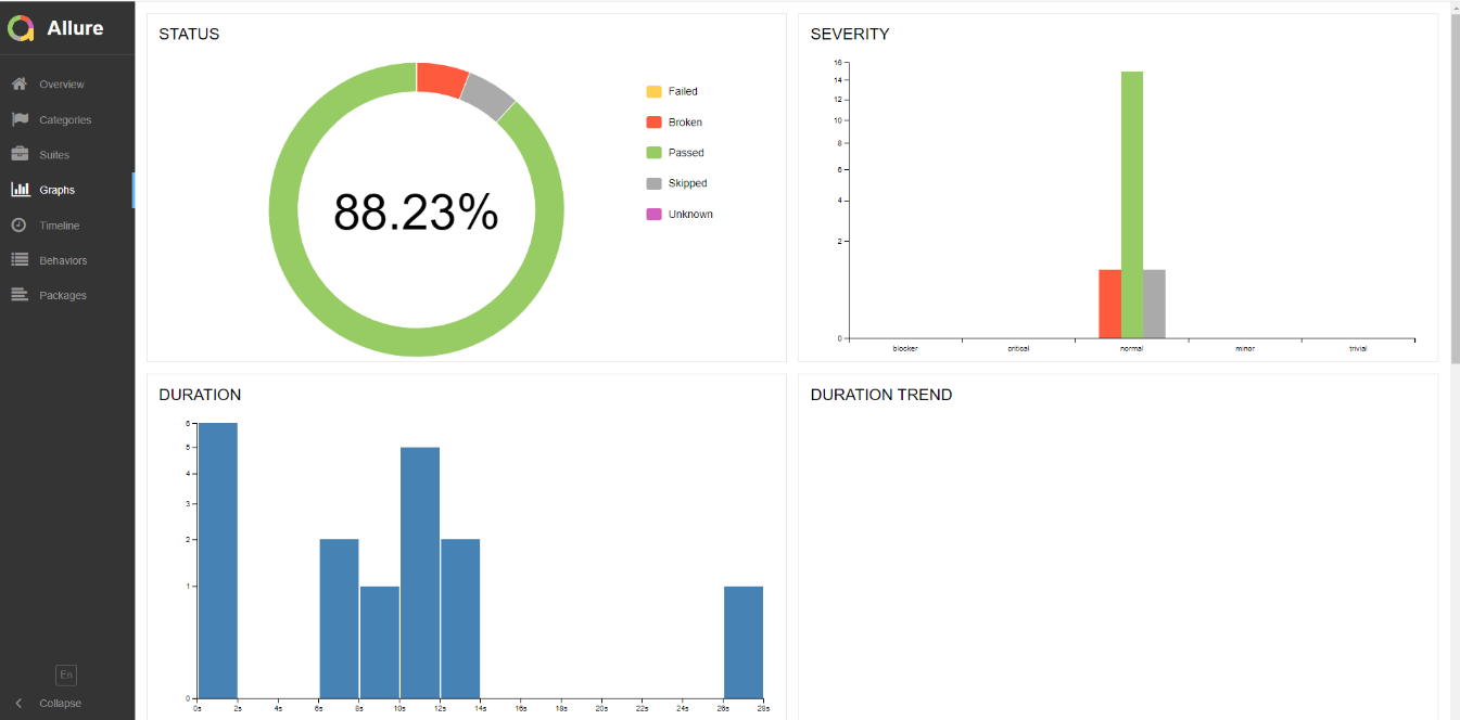 This section displays graphs generated by the Allure report.