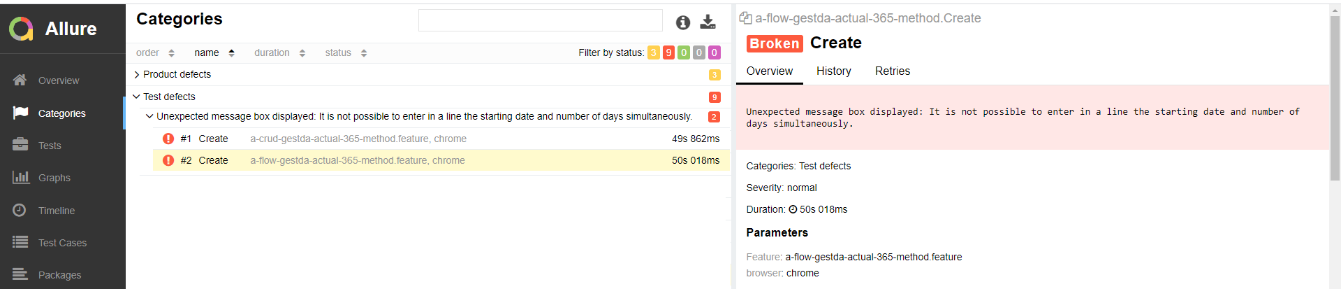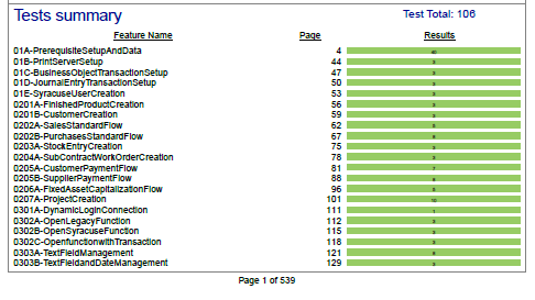 This section shows the list of the automated tests (features) that were executed.