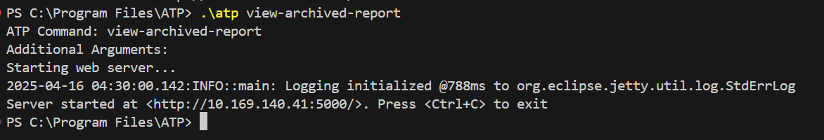 Enter the .\atp view-and-archive-report command in the VS Code terminal and then press Enter. To stop the command, press Ctrl+C and enter the required answer to confirm your choice.