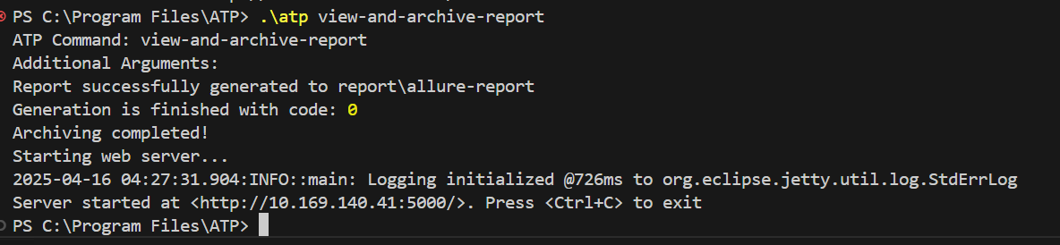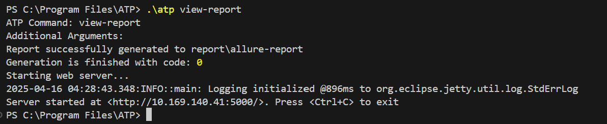 Type the following command in the terminal to display the allure report: .\atp view-report