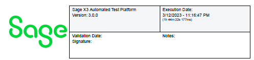 The Version of Sage X3 Automated Test Platform.