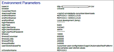 The third block shows the list of the environment parameters such which user was used on a specific environment.