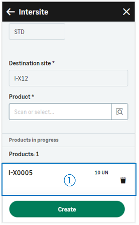Before validating the creation, you still have the possibility to delete a saved intersite transfer: Tap the delete icon. |