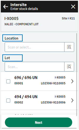 You can perform another intersite transfer for another product: Scan or select the product and repeat step 4 to step 9.