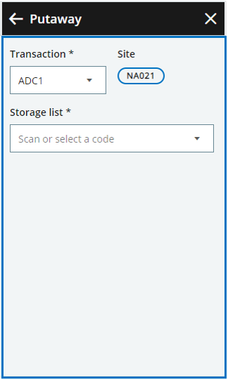 Putaway initial page