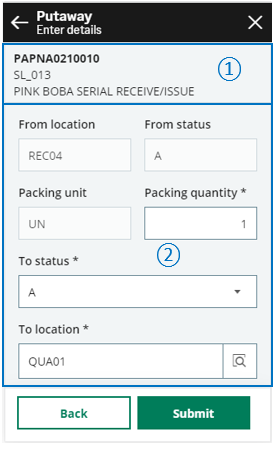 - Enter the quantity to put away and check the new stock details.