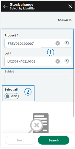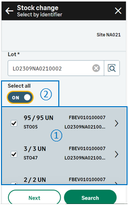 This page displays only when you leave the Select all switch turned off on the previous page because you need to search and check the stock lines.