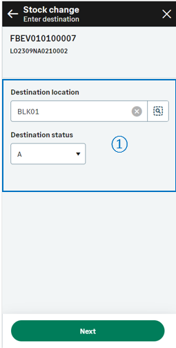 Tap Next. You are automatically redirected to the initial page. The stock lines to be moved are listed at the bottom of the screen. You are ready to complete one of the following actions: