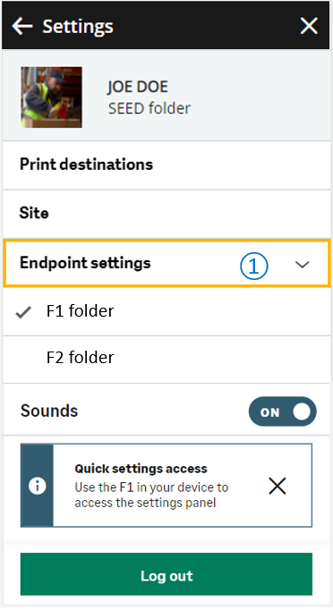 4. Log in again to the handheld device. The endpoint selected on the desktop application is used as the default endpoint folder.