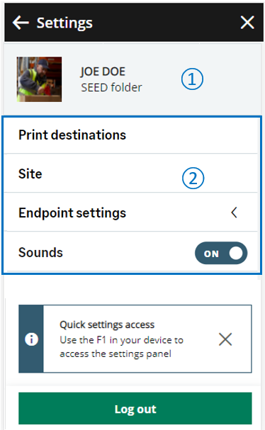 Some default settings are defined in your current Mobile Automation session. To display and modify these settings, open the hamburger menu available from the header. You can also use the F1 shortcut.