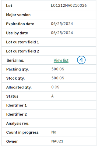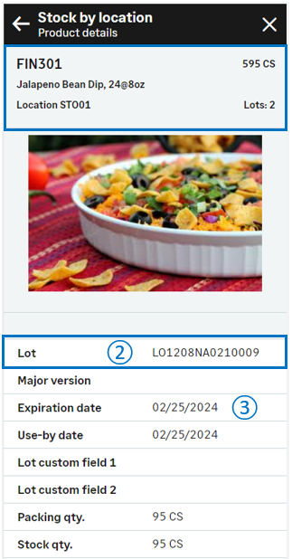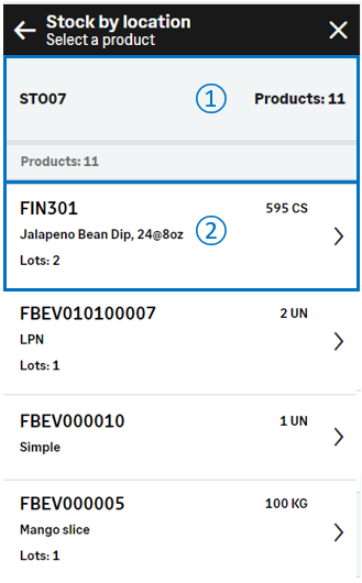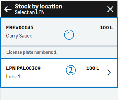 The screen displays the product details, sorted by license plate number if the product is managed by LPN.