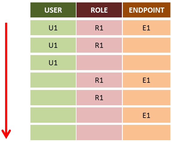 The applied algorithm for selecting the most relevant variant used is based on a ranking. When a user (for example, U1) is connected, he has a role (for example, R1), and can have an endpoint (for example, E1, but it can also be blank).