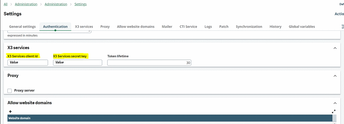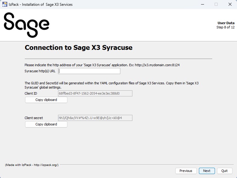 GUID and SecretID are generated in the .yaml configuration files of Sage X3 Services.